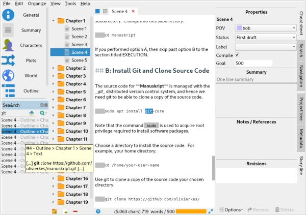 The free open-source writing tool Manuskript has released version 0.15 with several new features. Users can now set a writing goal for their current session to stay on track. Additionally, users can drag and drop elements from the outline view to the editor which is simplifying working with multiple panes. The list of supported interface languages has been expanded and translations are now more consistent. Furthermore, keyboard shortcuts now work regardless of the user's language settings. The new version of Manuskript is available for Windows, Mac and Linux.
