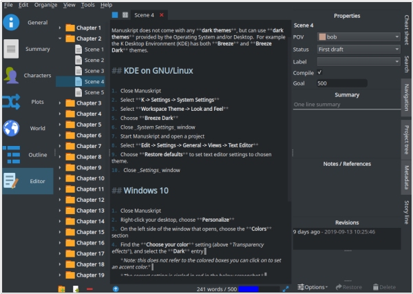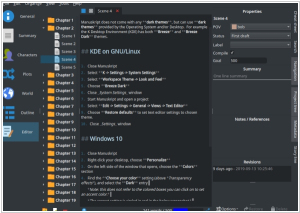 2019. Manuskript adds dark theme on Windows and Linux