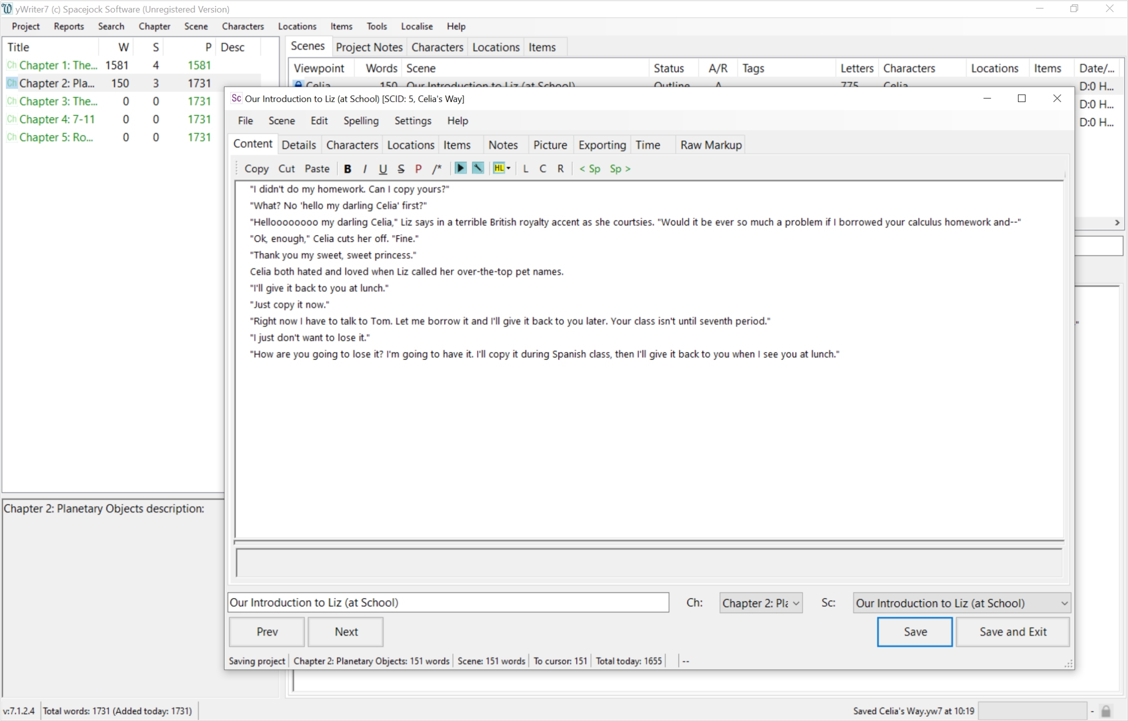 Free novel-writing software designed by veteran author and programmer, Simon Haynes. yWriter helps you to write a book by organising chapters, scenes, characters and locations in an easy-to-use interface.